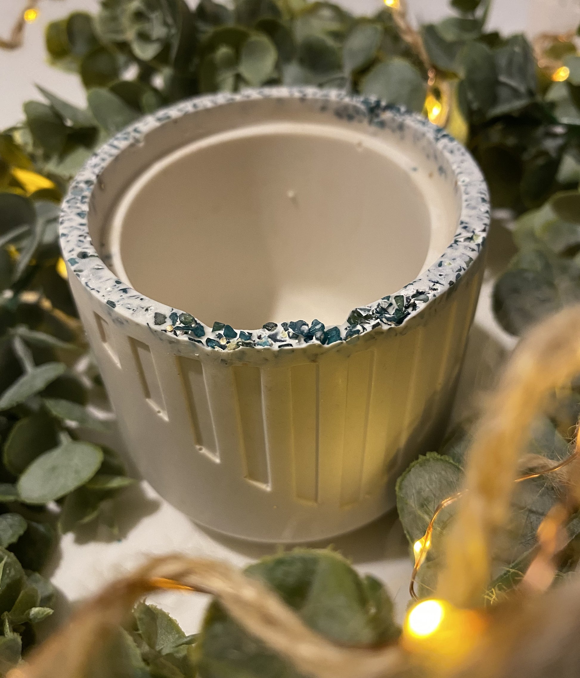 - Incrustation d'éclats de verre : le mariage de la Jesmonite et des éclats de verre crée un effet visuel saisissant. apportent une touche scintillante et élégante qui fera ressortir ce pot, aussi bien dans un salon que sur un bureau ou une étagère.